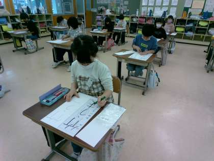 書写の学習で、書初の練習を行いました。今年は、「竹うま」と書きます。心を落ち着けて、丁寧に書こうとする姿勢がとてもかっこよかったです。