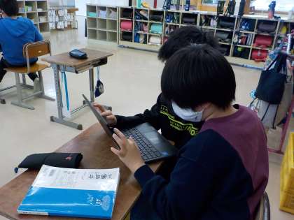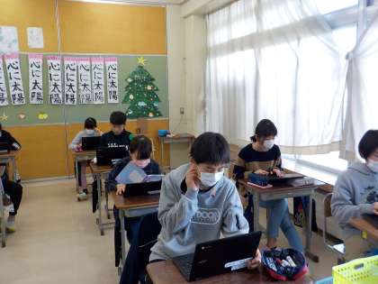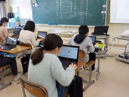「日本文化を発信しよう」の学習で、パンフレットを作っています。チームで発信したいテーマを決め、内容やレイアウトを考えてパンフレットにまとめています。完成が近づいてきました。