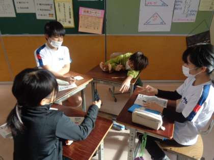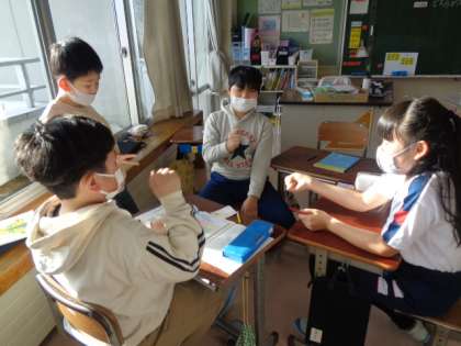 今日は、広さを比べる学習で、陣地とりゲームをしました。陣地とりゲームを通して、誰が一番広いか比べました。冬休みが明け、友達と関わりながらの学習を楽しんでいました。