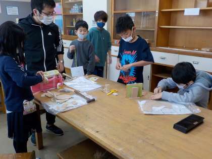 今日は「美しく安全に作品を仕上げる」ことを課題に取り組みました。やすりを使って、きれいにしたり、色を塗ったりして作品を仕上げました。