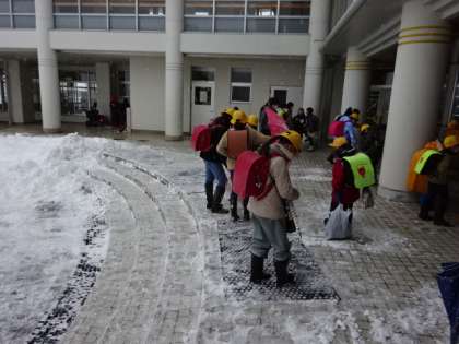 高学年の子供たちが率先して玄関前を除雪してくれました。