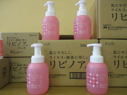 富山めぐみ製薬株式会社さんより「リピノア(350ml)」を261個と「リピノア ジェル(80ml)を300個、寄付していただきました。配付日は、リピノア(350ml)1月21日(金)、リピノア ジェル(80ml)1月25日(火)にそれぞれ1個ずつ児童に配付します。1月25日(火)はスキー学習があるので、4〜6年生はスキー学習に持って行き、それそれ必要な時に各自使用し、残りをご家庭へ持ち帰ります。