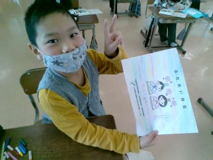 ふれあい弁当につけるのし紙の色塗りを行いました。もらった人のことを考えて、「今年も元気に過ごしてください」などの、温かいメッセージがたくさん見られました。