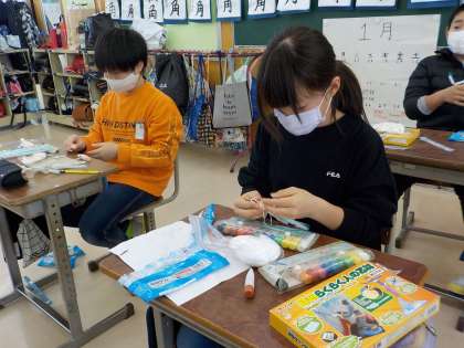 「未来のわたし」の学習を進めています。今日は、芯材に紙粘土をくっつけて人間の形に近付けました。自分が表現したいポーズに合わせて、粘土の量や表面の感じを工夫していました。
