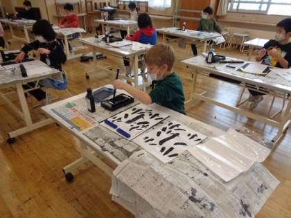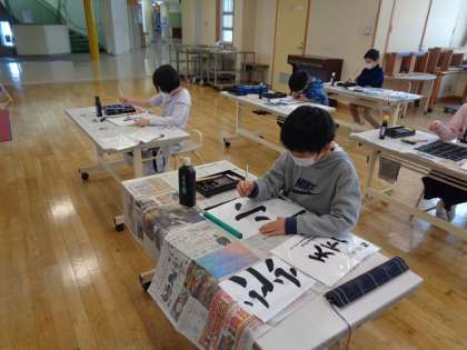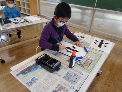 お手本を見ながら、はねやとめに気を付けながら書きました。
