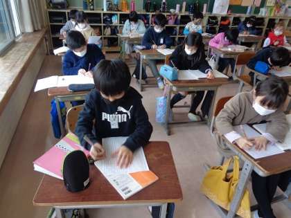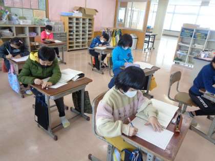 子どもたちは、冬休みの思い出と学校での思い出のどちらかを選んで文章を書きました。