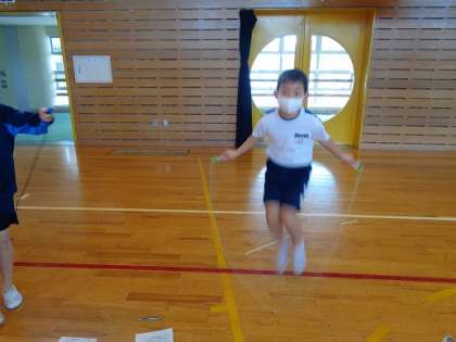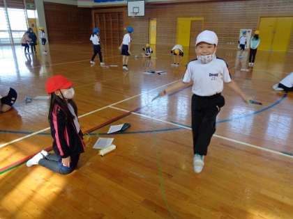 体育科の学習で縄跳びを行っています。1年生のときよりもできる技が少しずつ増えてきています。友達の跳んだ回数も真剣に数えてあげていました。休み時間にもチャレンジしている子供たちもおり、縄跳び名人を目指して頑張っています。
