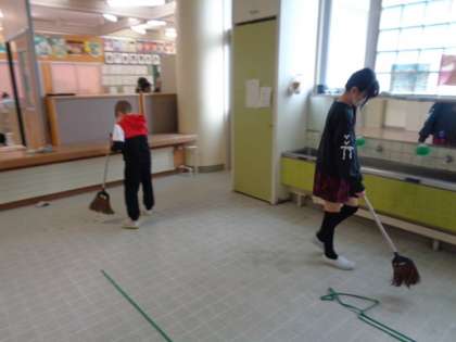 目当ての「時間いっぱい」を守って、集中して掃除していました。