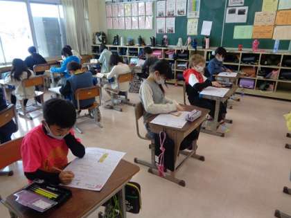 1限に国語科のテストをしました。 問題をよく読んで真剣に取り組んでいました。