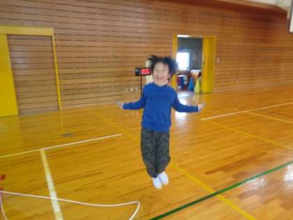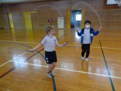 準備運動の縄跳びで、難しい技に挑戦している子がいました。