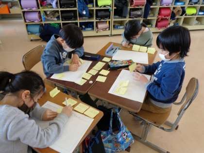 生活科の学習で「友達のすてきを伝え合おう」を行いました。「絵が上手ですごいね!」「周りの友達に席に座るよと教えてあげていてえらいね」「字がとてもきれいだね」など、友達のすてきなところを相手に伝え合いたいと思う気持ちが、言葉にたくさん込められていました。