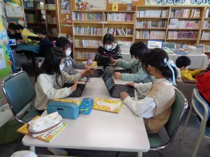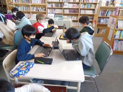 本やインターネットで調べたことを、自分のクロムブックでまとめています。