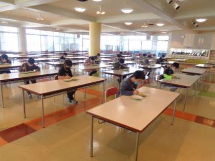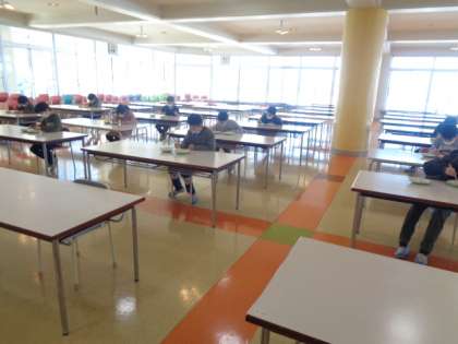 リフレッシュタイムに給食委員会主催の豆つかみ大会がありました。