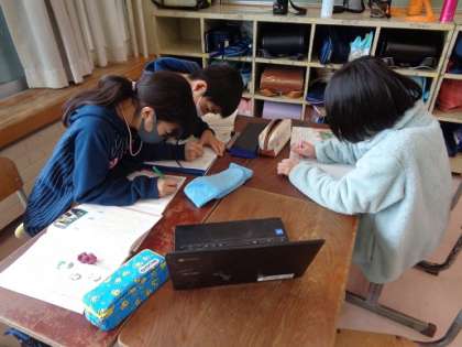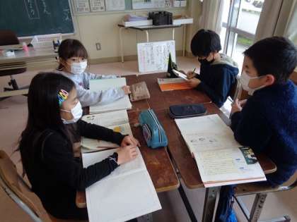 グループで、大庄小学校のよいところを話し合い、発表する内容を決めました。