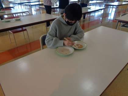 今日の豆つかみ大会は6年1組の日でした。
