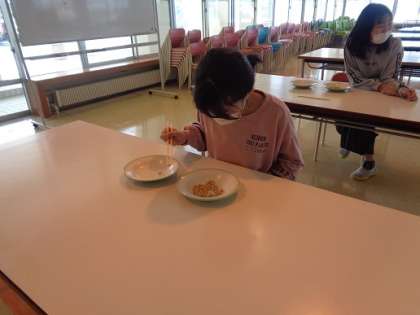 6年1組 豆つかみ大会