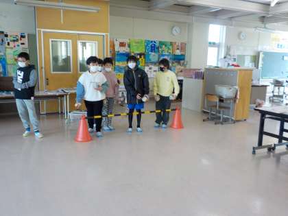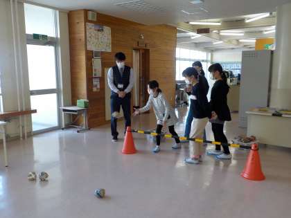 月曜日のリフレッシュタイムに、運動委員会が企画した「ボッチャ」に参加しました。目標の玉に近付くと、盛り上がっていました。