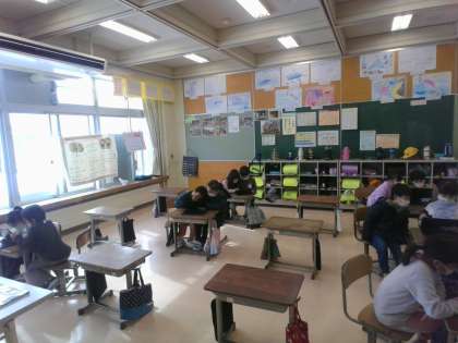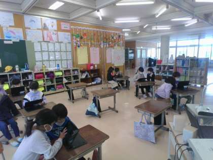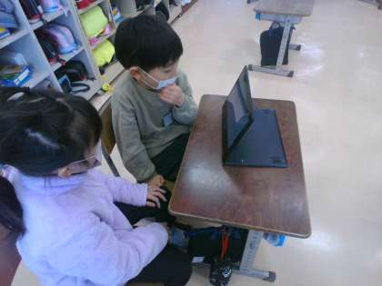 今日の国語は、ペアの友達とクイズを考えました。学校にあるものをクイズで出すために、どんなヒントを出すとよいか、友達と相談しています。一人より二人で考える方が、いろいろな意見が出ていいですね。