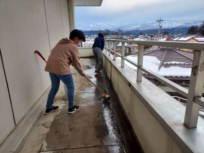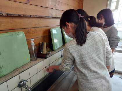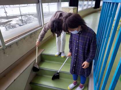 絆プロジェクトの一つとして、学校の清掃を行っている6年生。普段行わないような場所を重点的に掃除しています。こびりつきがひどいものや、ほこりが多い場所など様々ですが、6年間お世話になった学び舎に感謝を伝えようと、一生懸命活動しています。