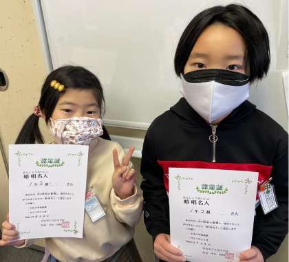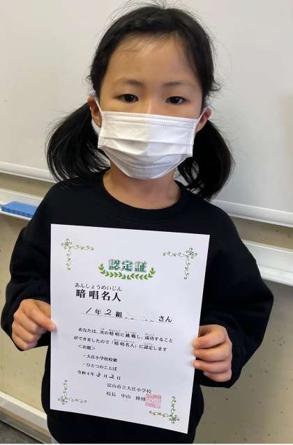 新たに暗唱名人が誕生しました。 何度も練習して、何度も挑戦しています。 がんばる1年生です。