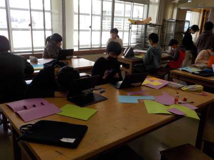 今日は、図画工作科の時間に飛び出すカードをつくりました。家族や友達へ一生懸命にカードをつくっていました。