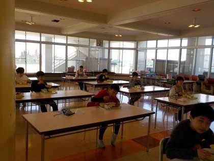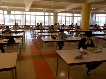 ランチルームでの給食も残りわずかとなりました。黙食を続けてがんばっています。