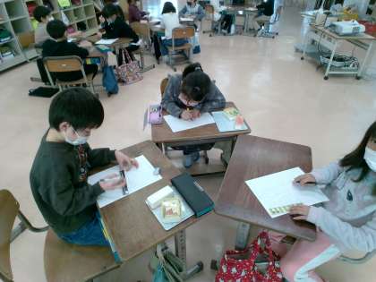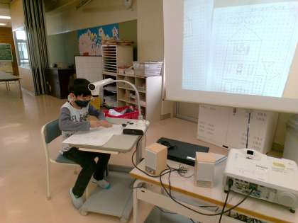 今日の算数は、算数博士から最後のお願いが届きました。点と点をまっすぐな線でつないで、いろいろな形をつくってほしいと頼まれ、子供たちはやる気に満ち溢れていました。家やロケット等、自分たちで想像して素敵な形をたくさんかくことができました。かたちフェスティバルは成功するのでしょうか。