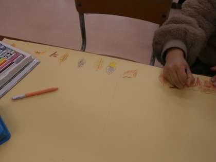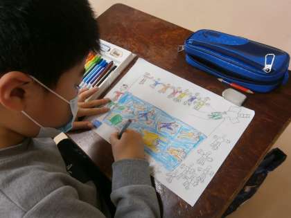 この1年間を思い出して、季節ごとの絵を作りました。学習したことやみんなで集合写真を撮ったときのことを描きました。