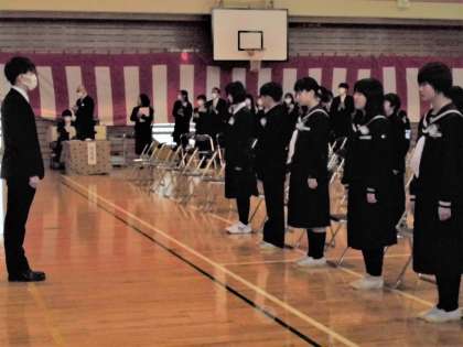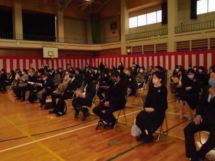 自治振興会長、育成会長をお迎えし、6年生45名がそろっての卒業式です。