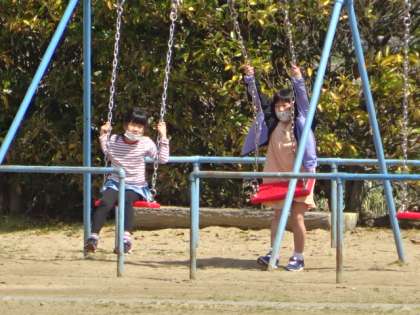 今日はとても天気がよく過ごしやすい一日でした。 雲梯やブランコでも仲良く遊んでいます。