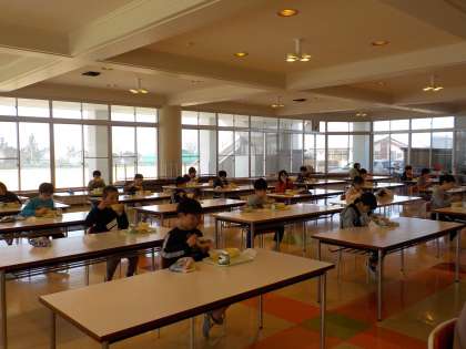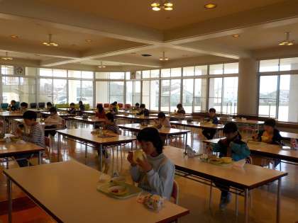今日から給食が始まりました。ランチルームでは、2年生といっしょに食べています。黙食の約束をしっかりと守り、2年生のお手本となっていました。