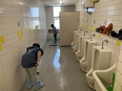 今日から掃除も本格的に始まりました。慣れない場所に戸惑いながらも、一生懸命掃除をする姿が見られました。