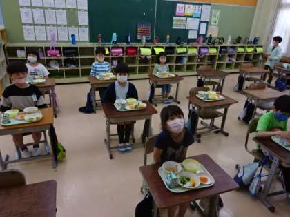 2年2組は教室で給食です。