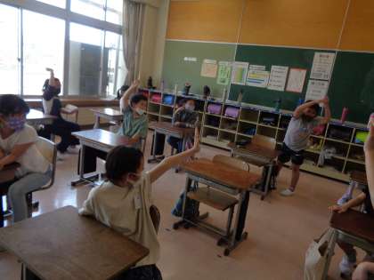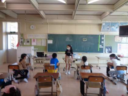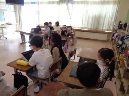 また、授業の中で「はい、いいえゲーム」を行いました。一所懸命質問を考えながらも、クラスのみんなで楽しい時間を過ごす姿が見られました。