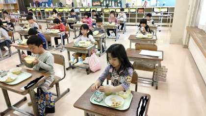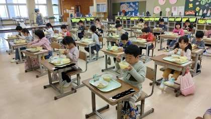 給食の準備や後片付けを頑張っています。 食事中は、静かに食べることに気を付けています。