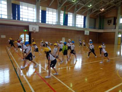 3年生は、準備運動も自分たちだけで進めることができます。準備運動をしっかりして、体育の時間、けがなく安全に活動しましょう。