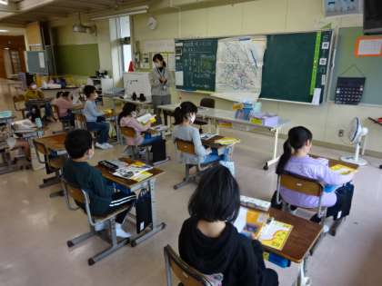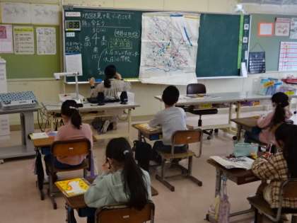 大庄校区の地図を見て、気付いたこと、分かることについて話し合いました。
