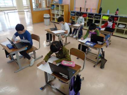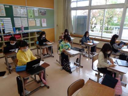 3年生になって、社会の学習が始まりました。大庄小学校のまわりの様子を地図を使って調べました。