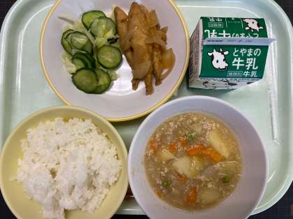 【献 立】 ごはん、牛乳 わかさぎの南蛮漬け きざみ和え じゃがいものそぼろ煮