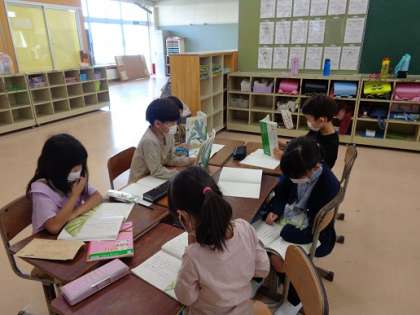 グループごとに、役になりきって音読をしました。授業の終わりには班ごとに動画を撮り、次回の授業で自分たちがどんな感じで音読しているのか、みんなで確認します。