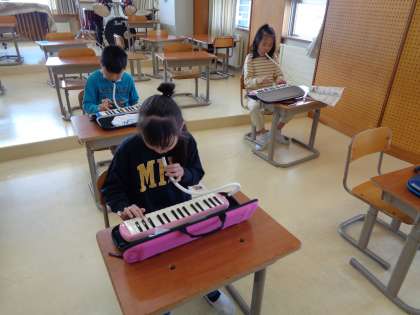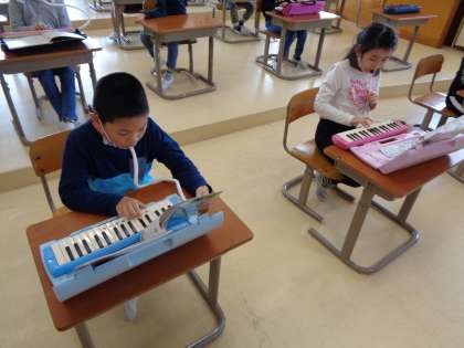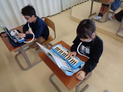 音楽の時間にけんばんハーモニカを演奏しました。指くぐりの練習をがんばりました。みんなでリズム・音・心を合わせてこれからも楽しく演奏しましょう。