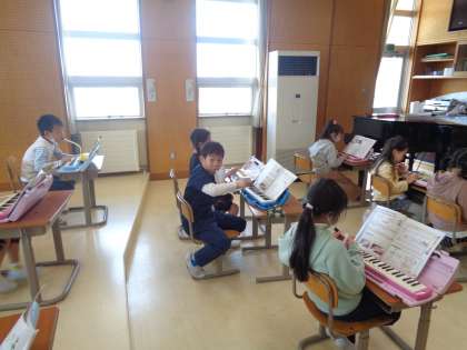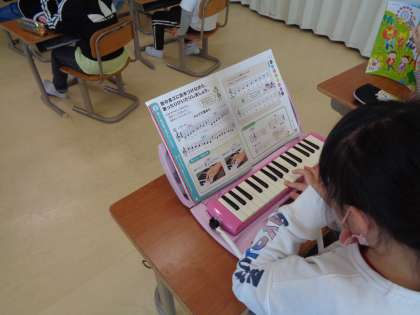 今日は、鍵盤ハーモニカ演奏を行いました。指くぐりや指またぎが難しく、最初は上手くいきませんでしたが、何度も練習すると少しずつ上手にできるようになりました。チャレンジし続ける姿勢が素敵でした。