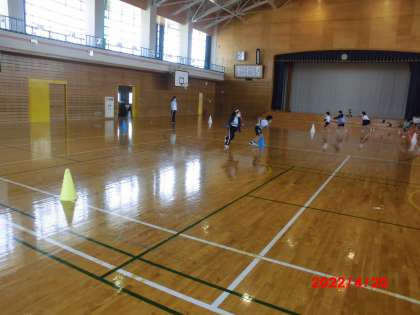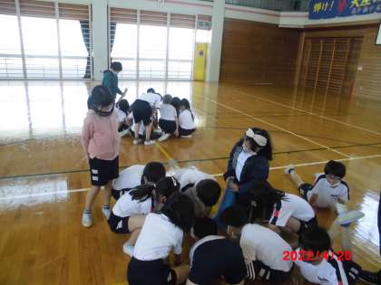 今日の体育では、3年生と一緒に行うカラフルタイフーンの組み合わせや走順を決めました。3年生のことを考えつつ短い時間で決めて、一度練習することができました。