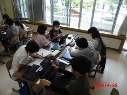 今日の社会では、自分たちのグループのスライドの最後のチェックと発表原稿づくりを行いました。分担ごとに確認し、よりよい発表になるように協力していました。