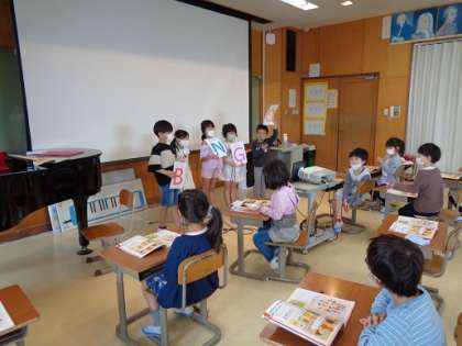 また、音楽の授業では「はじめの歌」と「終わりの歌」を歌ったり、「今日のメニュー」で楽しい活動をしたりしていますが、毎回とても楽しそうに取り組んでいます。