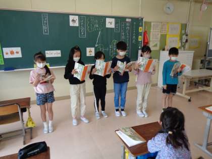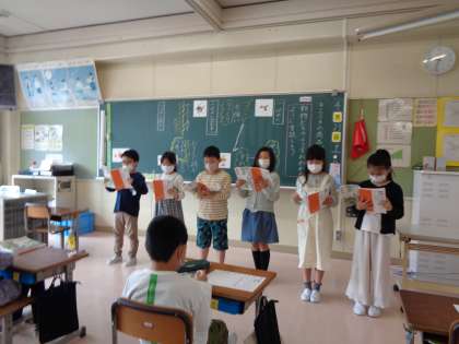 学習参観では、きつつきの商売を音読しました。動物のようすが伝わるように各グループ工夫して音読することができました。それぞれのよさにも気づけてすてきな発表になりましたね。