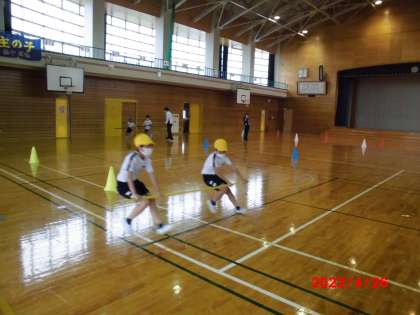 4年生の体育では、カラフルタイフーンのルール確認をしました。