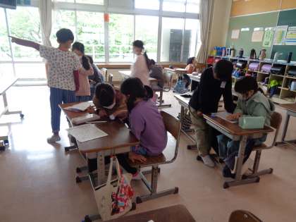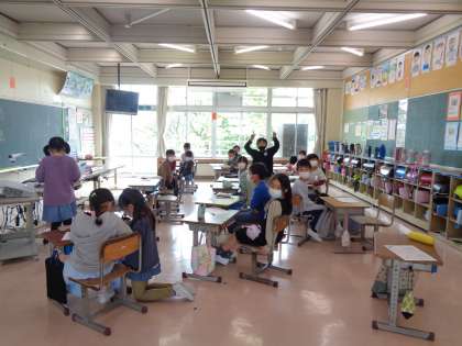 今日の社会は東西南北について学習しました。自分たちの教室で見たときに、どの方向が北になるのか、みんなで確認しました。方位磁針も使ってみました。最後は西の方角を見て学習を終わりました。
