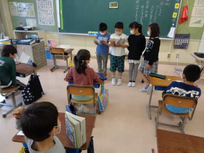朝の会にクイズ会社がクラスの人にクイズを出しました。どの会社も自主的に活動を行っています。クラスのみんなが楽しめるようにするにはどうしたらいいか考えて、いろいろな活動をしてほしいです。
