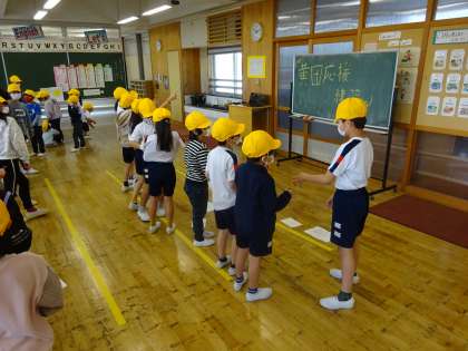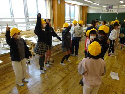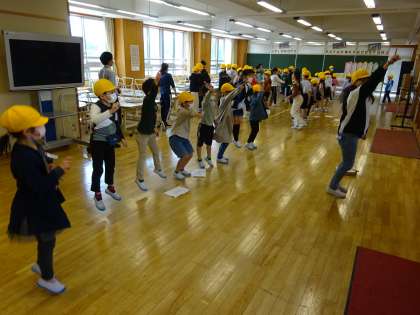 黄団は多目的室で練習です。 一つ一つの動きを確認しながら進めています。